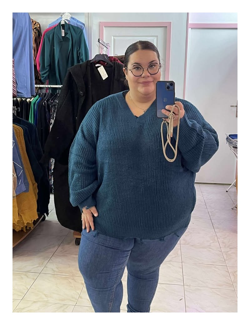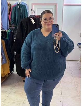 Pull ample léger chandail à déchiré et délavé à col V en uni-colorie