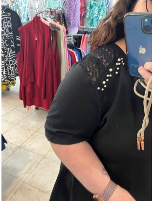 T-shirt à dentelles ajouré avec perles